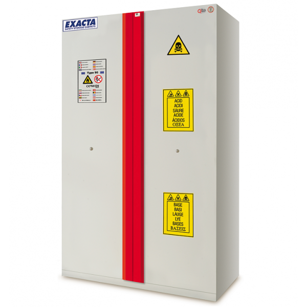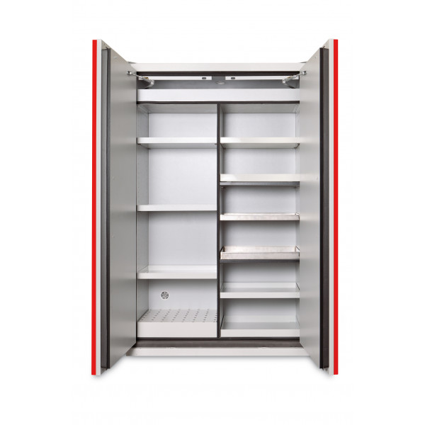 Armoire de sécurité ANTI-FEU 90 mn haute 2 portes 4 compartiments selon NF-EN 14470 BVQI (Bureau Vérification Qualité International Veritas) pour produits inflammables et acides ou bases