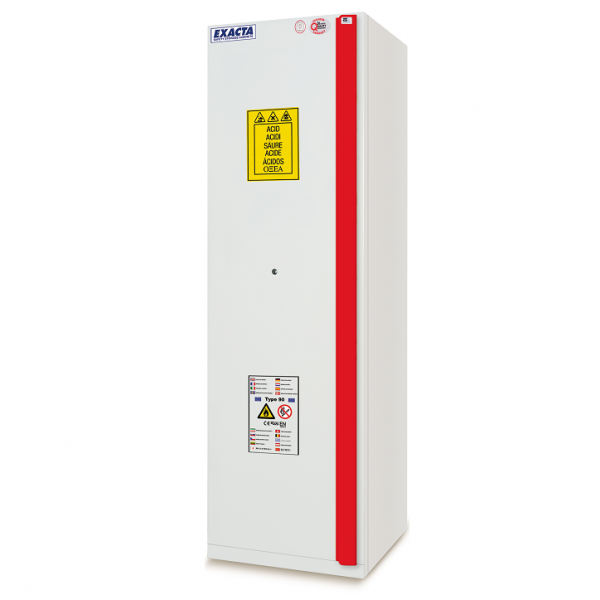Armoire de sécurité ANTI-FEU 90 mn haute 1 porte 2 compartiments selon NF-EN 14470 BVQI (Bureau Vérification Qualité International Veritas) pour produits inflammables et acides ou bases