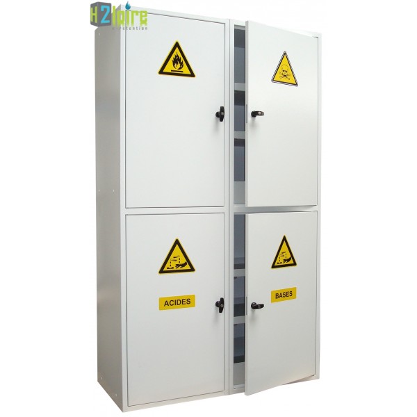 - 2 compartiments assemblés juxtaposés soit 4 compartiments au total : 1 module "inflammables" + 1 module "toxiques" + 1 module "bases" + 1 module "acides"
