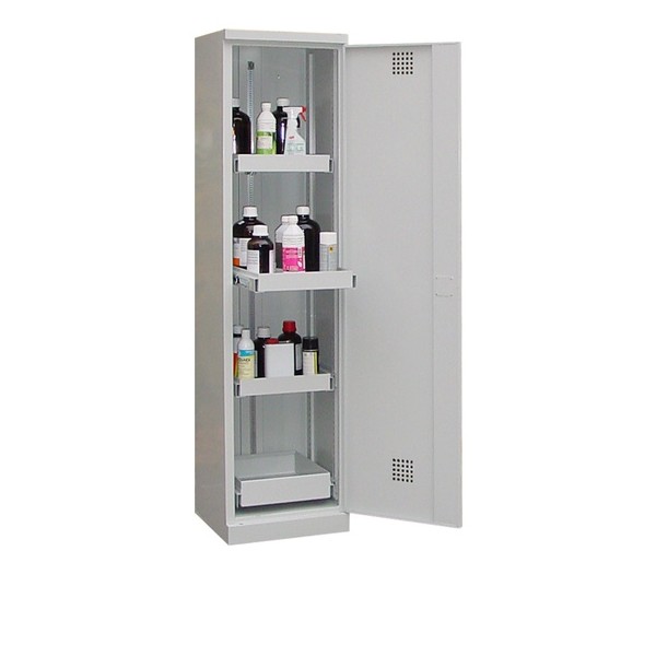 - Bac de rétention en acier au bas de l'armoire hauteur 80 mm, monté sur rails coulissants.