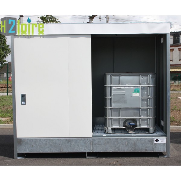 Armoire ECOPACK avec portes grande hauteur pour 2 cubi de 1000 l ou 8 fûts de 200 l verticaux - volume : 1100 l (50 % de rétention)