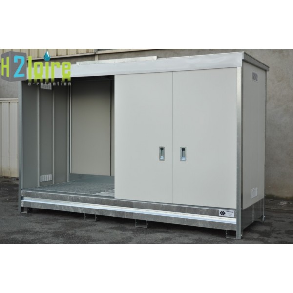 Armoire ECOPACK avec portes grande hauteur pour 3 cubi de 1000 l ou 12 fûts de 200 l verticaux - volume : 1500 l (50 % de rétention)