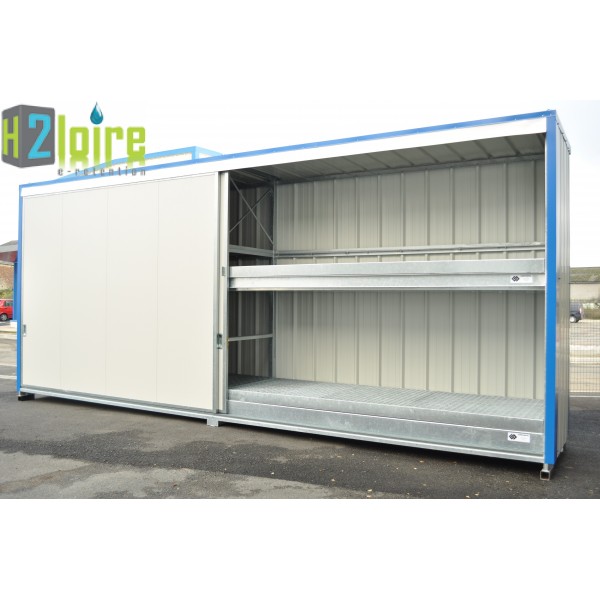 Capacité de stockage : 48 fûts de 220 l ou 12 conteneurs de 1000 litres