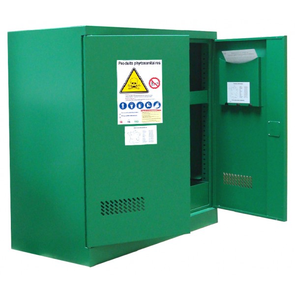 Armoire phytosanitaire pour le stockage de produits phytosanitaires. Modèle d' armoire phytosanitaire basse avec 2 portes manuelles.