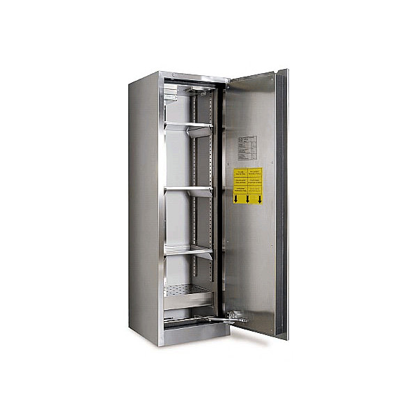 dim. ext. : 595 x 600 x ht 1950 mm - dim. int. : 490 x 440 x ht 1540 mm - 3 étagères (en acier inox (charge U.R. 60 kg) et 1 bac de rétention avec caillebotis inox (capacité : 20 l).