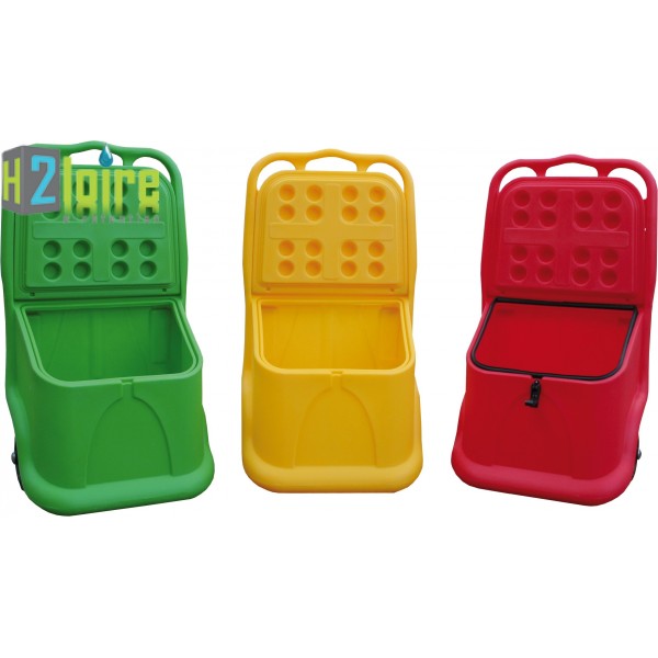 Coloris rouge vert ou jaune, couvercle rabattable.