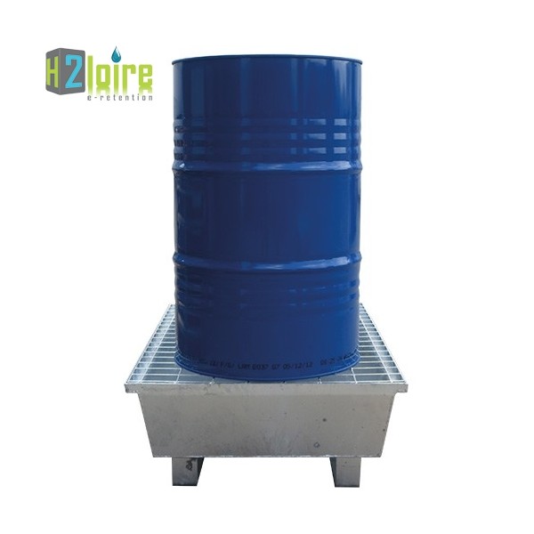 Bac de rétention pour fût de 220 l : 1 fût de 220 l avec caillebotis GAMME ECO finition acier galvanisé à chaud pour un volume de 220 l (100 % de rétention).