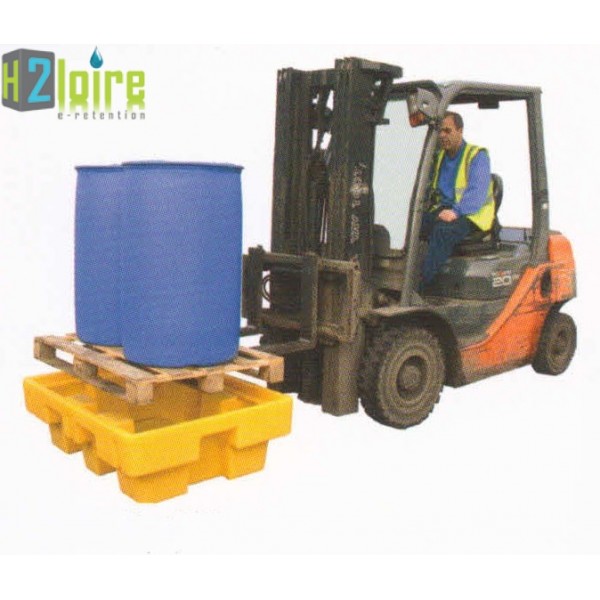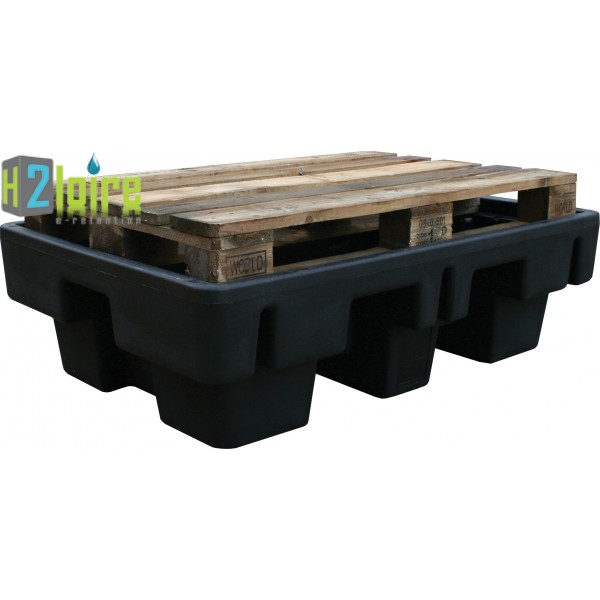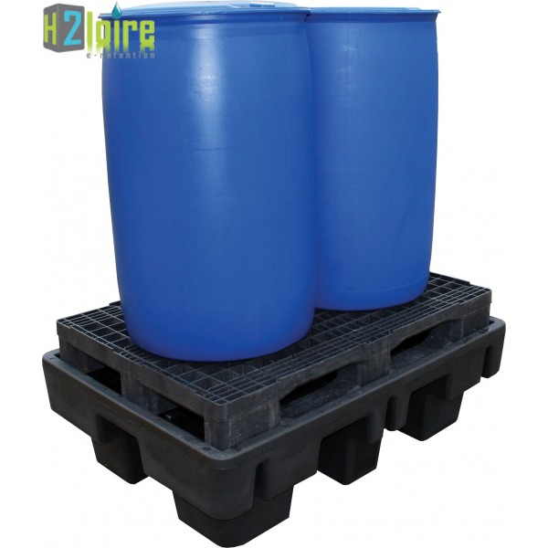 Bac de rétention SANS caillebotis finition polyéthylène recyclé pour palette de 2 fûts de 220 l dim. 1200 x 800 mm - volume 230 l (soit 50 % de rétention)
