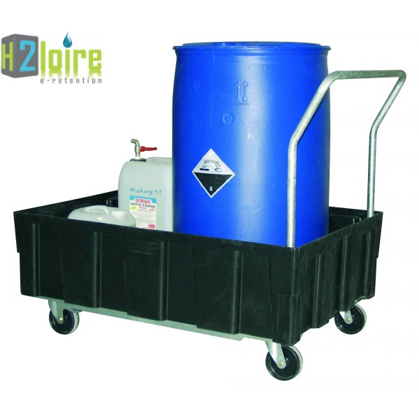 Equipé de 2 roulettes fixes et 2 roulettes pivotantes- volume 250 l (100 % de rétention)