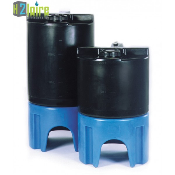 Cuve à vidange totale avec socle, volume 200 l - diam. 700 x ht 1105 (535 + 490) mm - Diam. de passage du couvercle : 150 mm