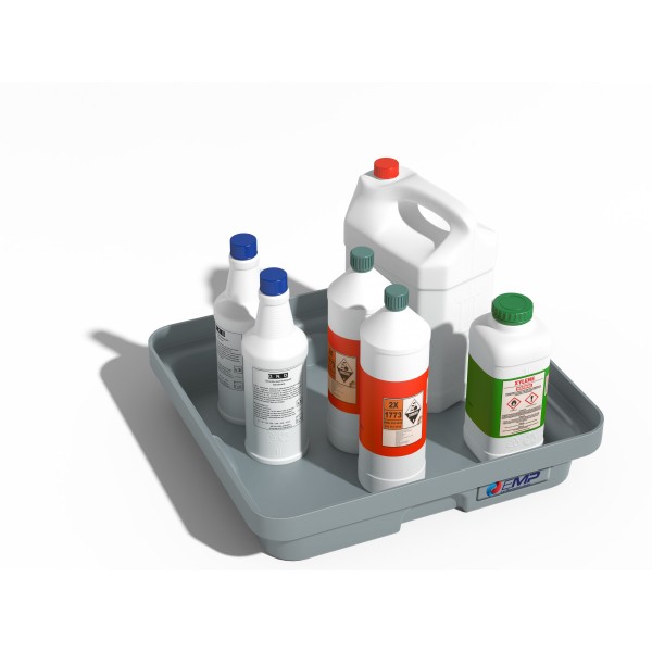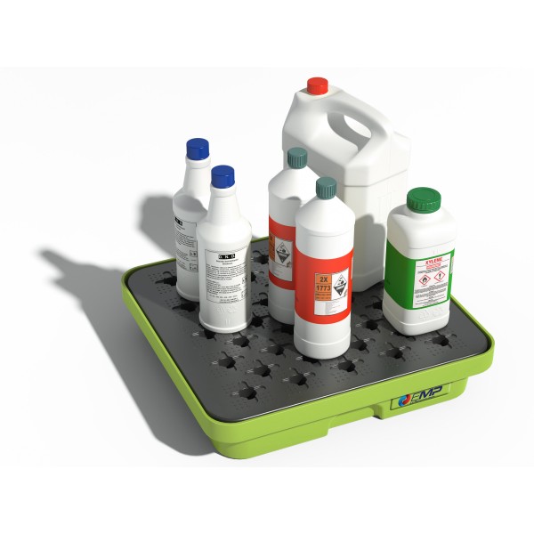 Adapté au stockage de flaconnage sur rayonnage, table de travail, ou au sol. Réalisé à 100 % en polyéthylène haute densité, traité U.V., offre une protection totale contre la plupart des corrosifs. Moulé monobloc, empilable à vide, sécurisant, résistant, léger et imputrescible.