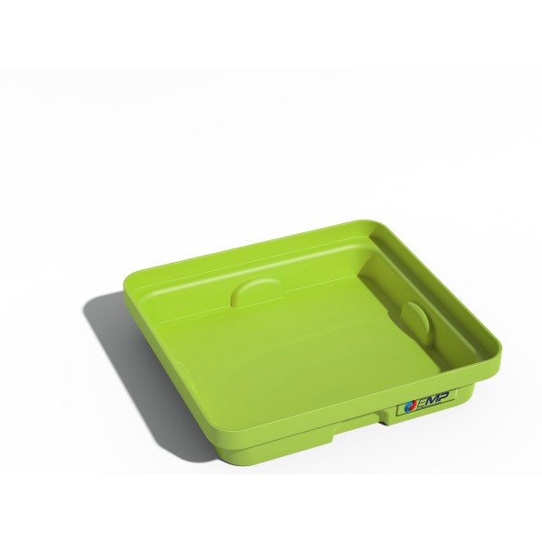 Charge admissible uniformément répartie : 35 kg - Bac coloris VERT OU GRIS, caillebotis amovible anti-dérapant noir.