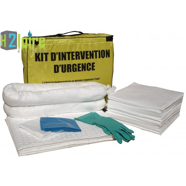 1 sac de transport nylon - 35 feuilles 41 x 46 cm - 3 boudins Ø 7,6 x 122 cm - 1 paire de gants - 4 essuyeurs - 1 sac de récupération