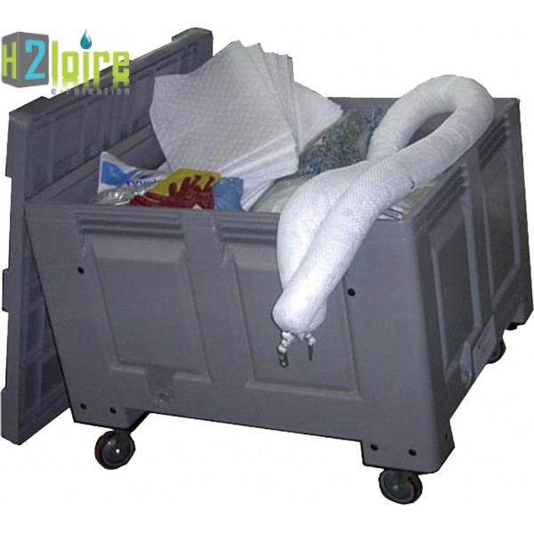Conteneur en polyéthylène est résistant aux intempéries afin de protéger les produits absorbants contre l'humidité et la saleté. Il est monté sur roulettes pour une mobilité maximale lors d'une intervention en cas de déversement. Le couvercle retiré, les absorbants sont facilement accessibles.