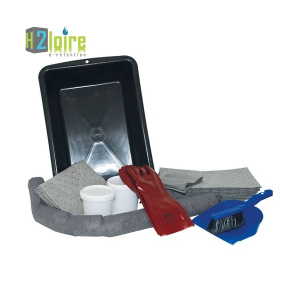 Kit ADR élaboré dans un bac de 25 litres, permet de récupérer une fuite éventuelle sous un camion, un réservoir, peut également servir pour stocker les absorbants.