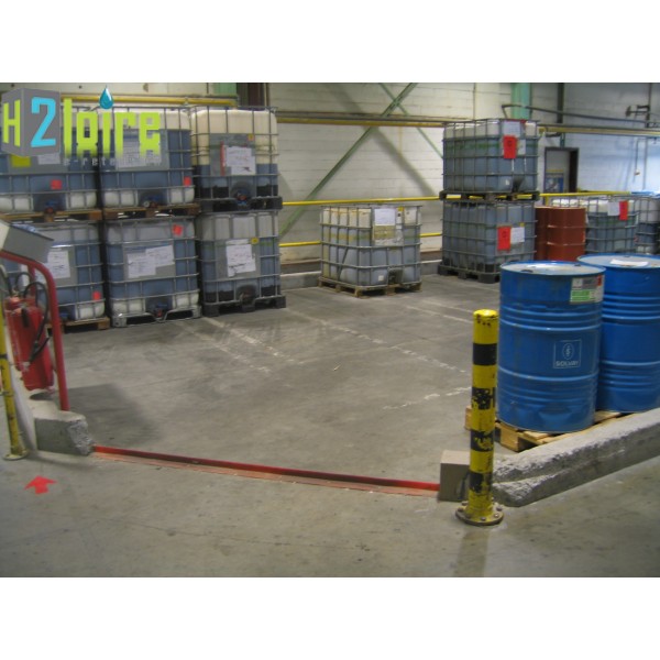 Barrière permanente fixée au sol de votre atelier pour contenir les liquides polluants.