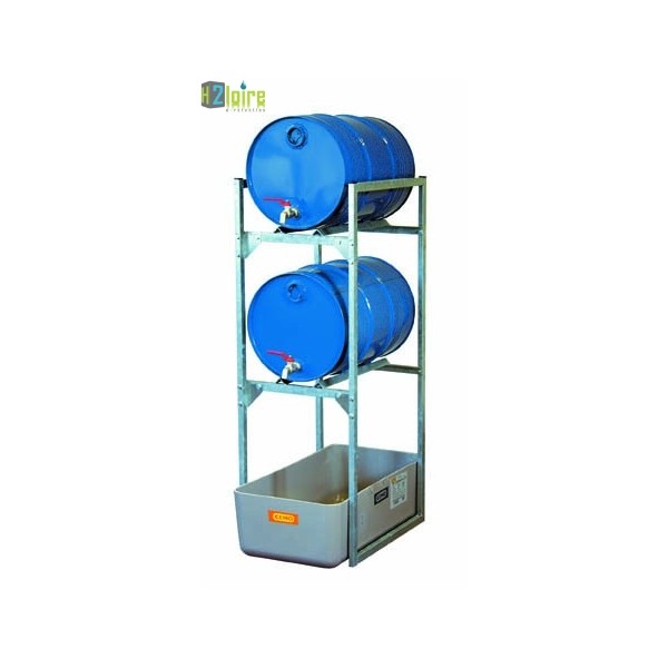 Rayonnage avec bac de rétention pour stockage de 2 fûts de 60 l horizontaux 1/1- volume 65 l
