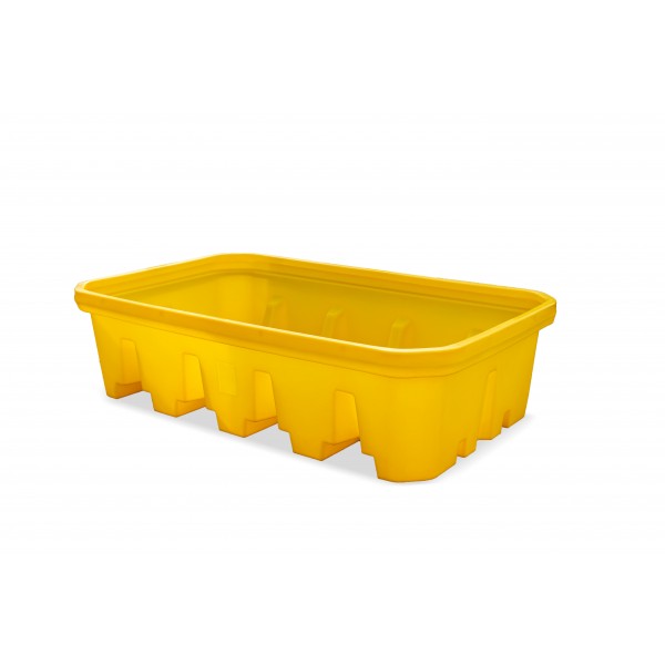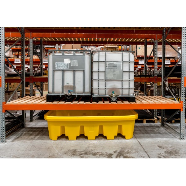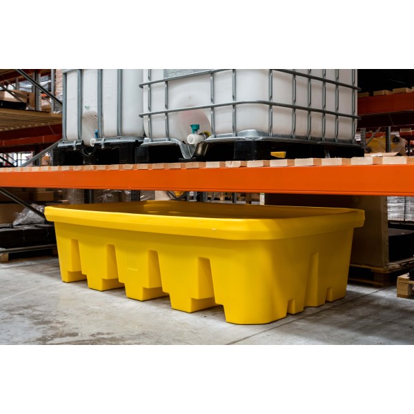 Bac pour rayonnage finition polyéthylène SANS caillebotis à poser au sol sous rack à palettes de travée 2200 mm - volume 1100 l